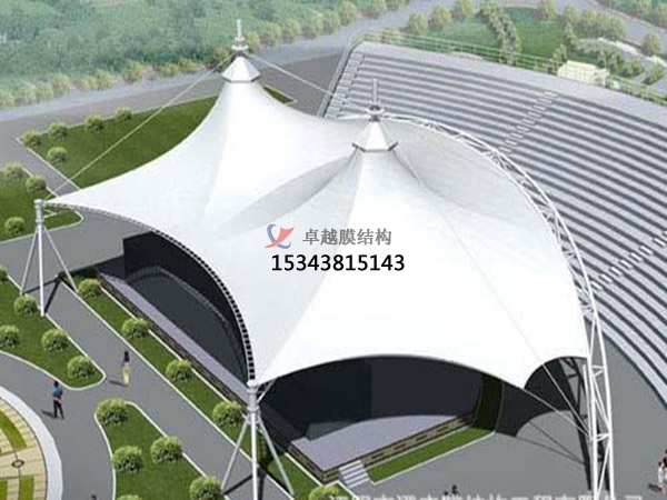 膜結(jié)構(gòu)遮陽(yáng)棚表面的材料是防紫外線(xiàn),而且涂有聚四氟乙烯涂層,不易附著灰塵,依靠雨水沖洗就能保持潔凈。