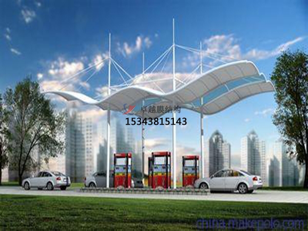 膜結(jié)構(gòu)雨棚是一種全新的建筑結(jié)構(gòu)形式,它集建筑學(xué)、結(jié)構(gòu)力學(xué)、精細(xì)化工與材料科學(xué)、計算機(jī)技術(shù)等為一體,具有很高技術(shù)含量。其曲面可以隨著建筑師的設(shè)計需要任意變化,結(jié)合整體環(huán)境,建造出標(biāo)志性的形象工程。