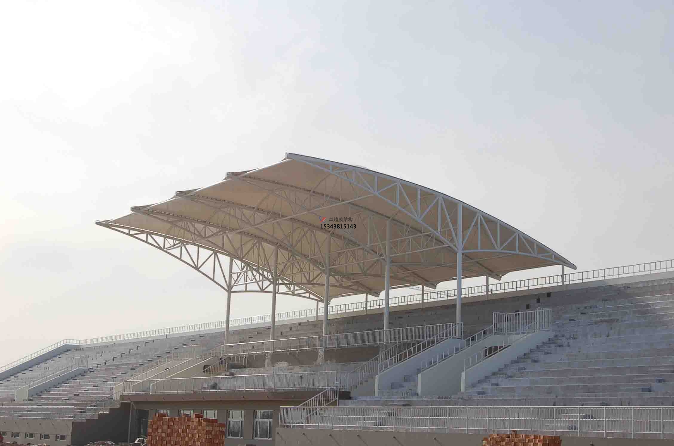 張拉膜遮陽(yáng)棚主要采用鋼結(jié)構(gòu)做骨架支撐結(jié)構(gòu),高自潔建筑膜材做屋面材料防水材料,設(shè)計(jì)美觀大方,結(jié)構(gòu)安全穩(wěn)定,使用壽命可達(dá)15年到30年。廣泛應(yīng)用在于各類大中專院校,體育場(chǎng)配套雨棚。卓越張拉膜遮陽(yáng)棚工程是較早年開展張拉膜設(shè)計(jì)施工的專業(yè)廠家,擁有各類張拉膜設(shè)計(jì)施工總承包資質(zhì),現(xiàn)在為大家介紹一下我司在西安周邊地區(qū)完工的一批張拉膜看臺(tái)工程案例,我司先后在西安附近地區(qū)完工了西安外國(guó)語(yǔ)大學(xué)張拉膜看臺(tái)頂蓋、西安工業(yè)大學(xué)張拉膜看臺(tái)遮陽(yáng)篷、西安財(cái)經(jīng)大學(xué)張拉膜看臺(tái)罩棚等一批完工項(xiàng)目,給大家簡(jiǎn)介一下: