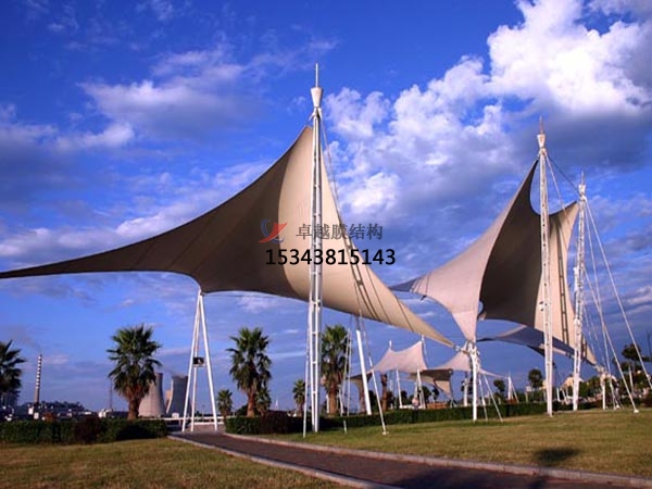 膜結構是一種全新的建筑結構形式,它集建筑學、結構力學、精細化工與材料科學、計算機技術等為一體,具有很高技術含量。其曲面可以隨著建筑師的設計需要任意變化,結合整體環(huán)境,建造出標志性的形象工程。