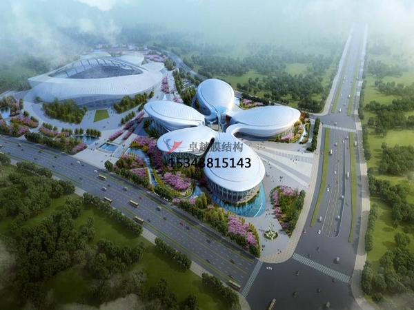 1、膜結(jié)構(gòu)公司建議采用分塊吊裝的方法,就是將膜體按平面位置分為若干作業(yè)塊,每塊膜體同樣采用多點(diǎn)整體吊裝技術(shù),整體吊裝到位。若采用整體提升技術(shù),要求投入的設(shè)備和人員較多,施工準(zhǔn)備期較長。在整個(gè)安裝過程中要特別注意防止膜體在風(fēng)荷載作用下產(chǎn)生過大的晃動(dòng)。