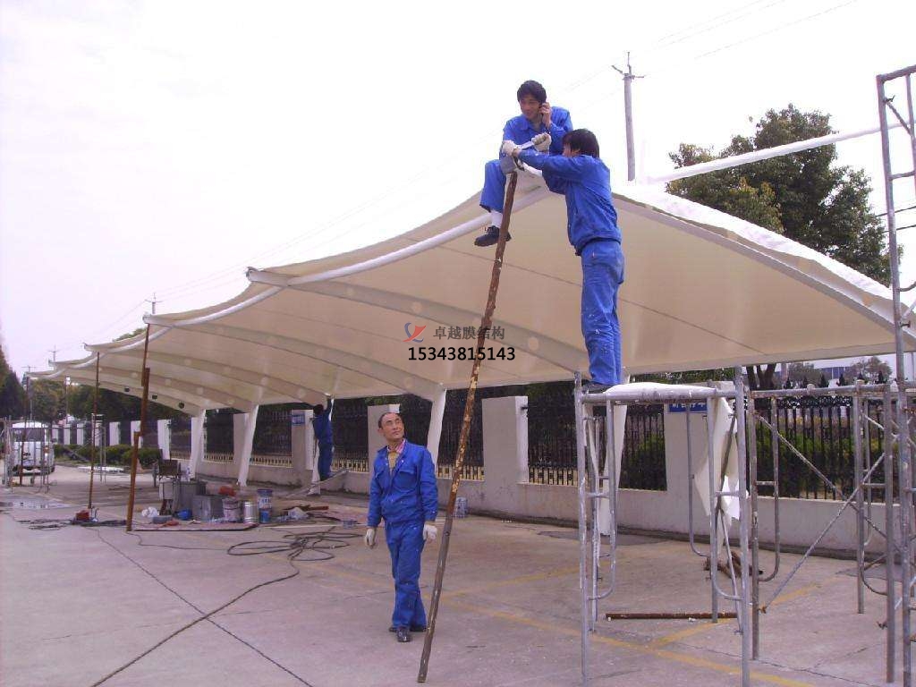 膜結(jié)構(gòu)的停車棚是解決小區(qū)停車難的問題, 膜材料的涂層是采用的是PVc樹脂,由于是隨著使用的期長,PVc樹脂中的塑性劑是會(huì)移到膜材料的表面而黏著空氣及雨水中的臟物使表面的是變臟,而一旦的是被黏著的臟物就很難清洗掉。