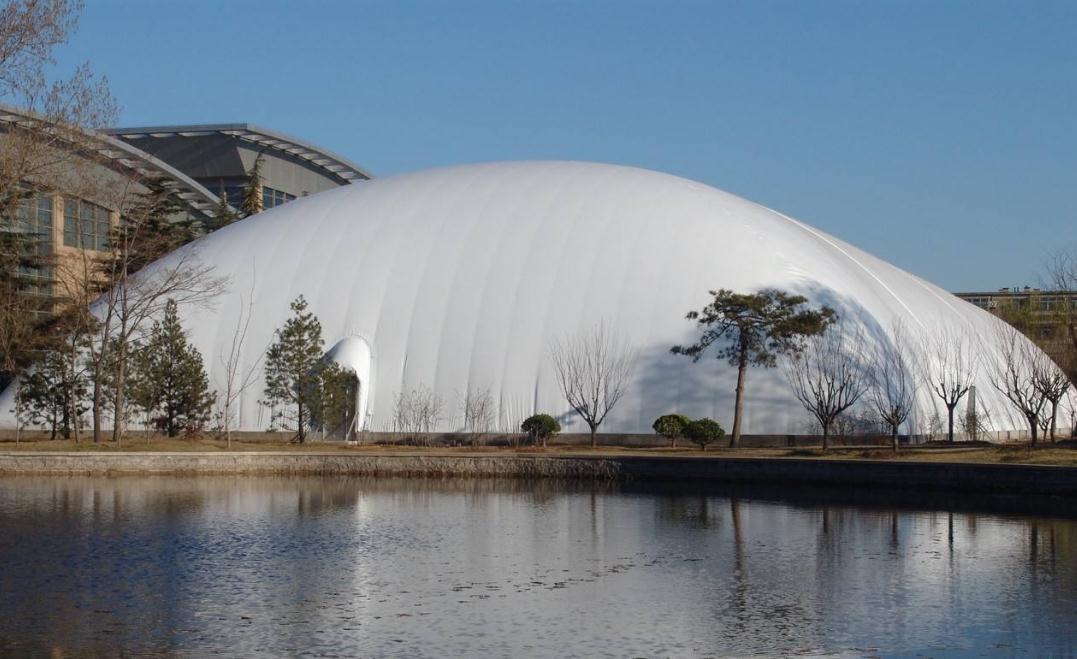 充氣膜體育館是用特殊的建筑膜材做外殼,配備一套智能化的機電設(shè)備在氣膜建筑內(nèi)部提供空氣的正壓,把建筑主體支撐起來的一種建筑結(jié)構(gòu)系統(tǒng)。