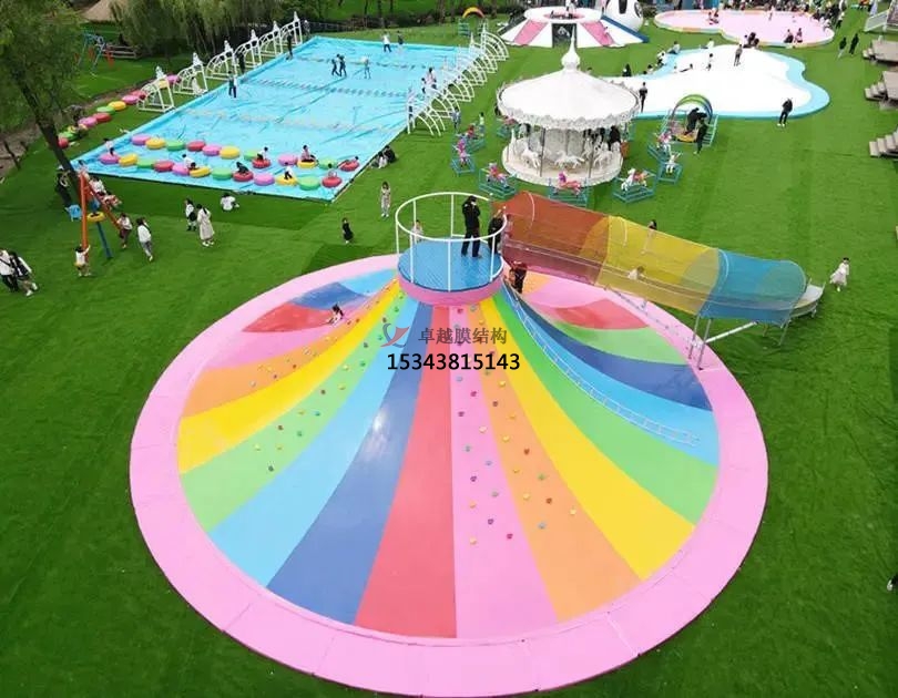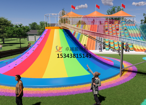玩法:小朋友們拉著繩子,沿著火山坡往山頂攀爬,由于繩子是擺動的,坡面也是非常軟,非??简炐∨笥训氖直哿α?,一般的小朋友需要在大人的協(xié)助下一起完成,更好的體現(xiàn)了親子互動的效果。