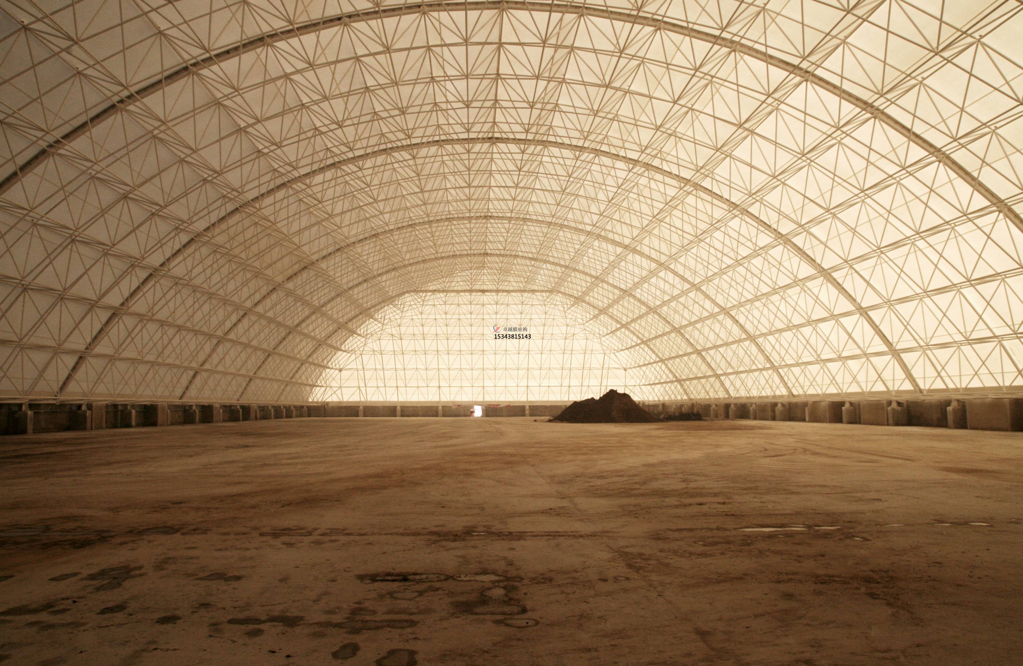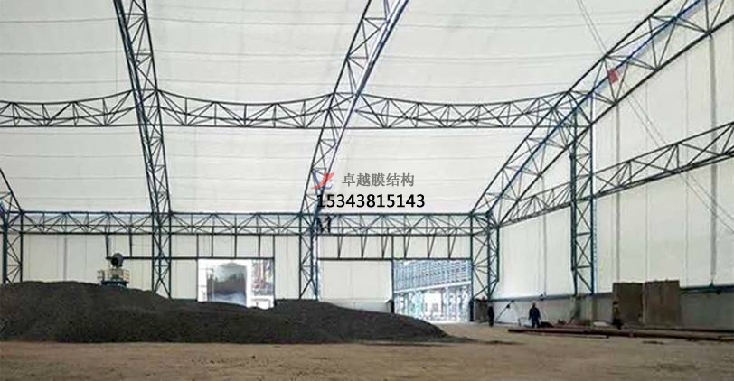再次,膜結(jié)構(gòu)煤棚的空間利用率高。由于膜結(jié)構(gòu)內(nèi)部無需使用結(jié)構(gòu)或梁柱,使得其內(nèi)部擁有超大空間,并且能讓這空間被充分使用。這對于煤炭儲存等需要大跨度空間的行業(yè)來說,無疑是一個巨大的優(yōu)勢。