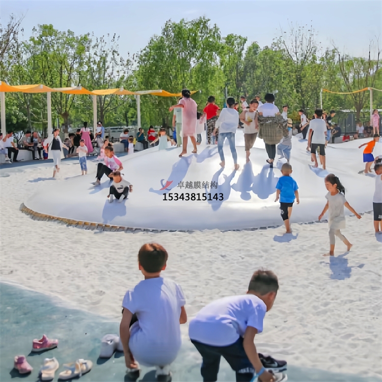 與傳統(tǒng)式蹦蹦床相比,卓越膜結(jié)構(gòu)公司的蹦蹦云可根據(jù)使用需求自由設(shè)計(jì)彈跳面的弧度與形狀,實(shí)現(xiàn)多種造型和異形結(jié)構(gòu)的設(shè)計(jì),豐富的外觀造型帶來更強(qiáng)的美觀性和趣味性。