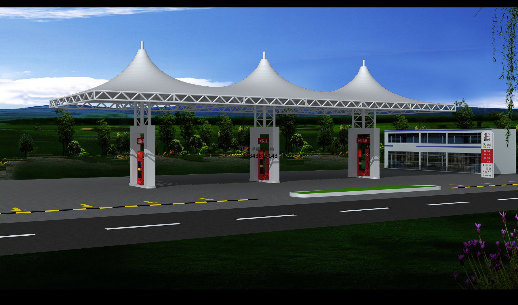 加油站加氣站的初始態(tài)設(shè)計(jì)是一個(gè)需要反復(fù)修改,反復(fù)商榷討論的過(guò)程,當(dāng)基本形態(tài)確定后需要考慮它的荷載態(tài)。膜材是比較輕的,搭建而成的膜結(jié)構(gòu)和鋼材建筑、混凝土建筑相比重量也非常的輕,因而在承載能力上有一定的欠缺,需要多加考慮,不過(guò)重量輕的同時(shí)也說(shuō)明加油站加氣站具有很好的地震適應(yīng)性,發(fā)生倒塌的時(shí)候不會(huì)造成嚴(yán)重后果。