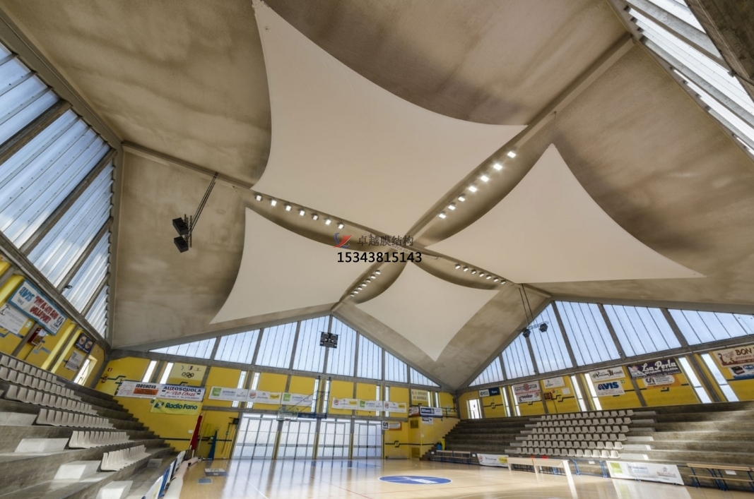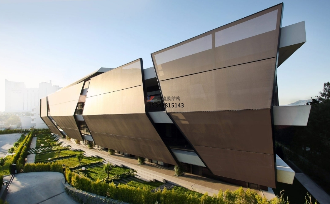 此外,PTFE膜結(jié)構(gòu)的薄膜具有一定的透光性,能夠有效利用自然光線,降低室內(nèi)照明能耗,遮擋紫外線和紅外線,減少太陽輻射對建筑內(nèi)部的熱負荷,實現(xiàn)能源的節(jié)約和環(huán)境的保護;且PTFE膜結(jié)構(gòu)能夠通過不同的張拉和固定方式,創(chuàng)造出各種形態(tài)的建筑設(shè)計。它可以形成曲線、弧線、折線等多樣化的形狀,滿足建筑師對于獨特外觀和創(chuàng)新設(shè)計的需求。