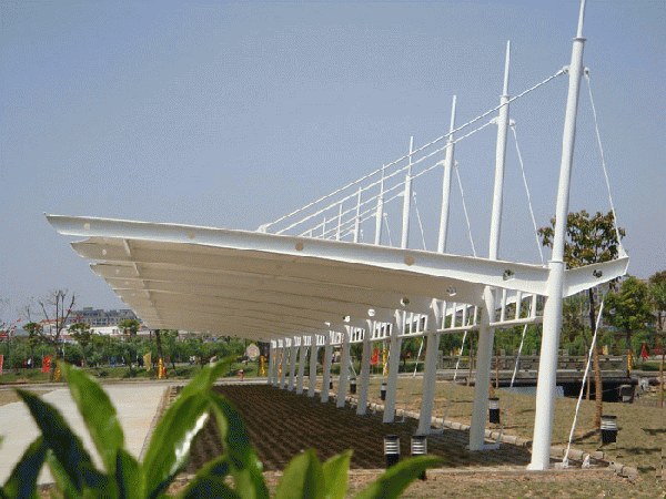 索膜建筑之所以能滿足大跨度自由空間的技術(shù)要求,更關(guān)鍵的一點(diǎn)就是其有效的空間預(yù)張力系統(tǒng)。有人把索膜建筑稱為“預(yù)應(yīng)力軟殼”,是預(yù)應(yīng)力使“軟殼 ” 各個(gè)部分在個(gè)中更不利荷載下的內(nèi)力始終大于零(永遠(yuǎn)處于張拉拉伸狀態(tài)),從而使”軟殼“成為空間整體工作的結(jié)構(gòu)媒體和建筑圍合材料,使得索膜建筑富有迷人的張力曲線和變幻莫測的空間,使體系得以覆蓋大面積,大跨度無柱自由空間,并且可以抵抗狂風(fēng),大雪等不利荷載狀況。