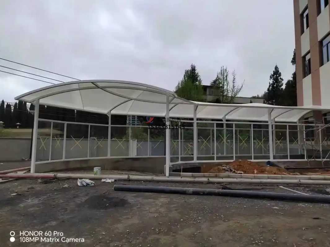 膜結(jié)構(gòu)雨棚的設計靈活多樣,可以根據(jù)實際情況進行定制。同時,其建設周期相對較短,能夠快速搭建,提高了施工效率。