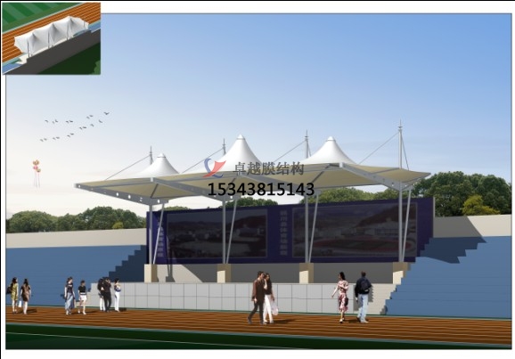 張拉膜看臺(tái)主要用于各類地方體育場(chǎng)主席臺(tái)雨棚,各類學(xué)校體育場(chǎng)看臺(tái)雨棚遮蓋,我公司是國內(nèi)較早從事大懸挑張拉膜結(jié)構(gòu)看臺(tái)設(shè)計(jì)施工的專業(yè)廠家,下面介紹一下我們?cè)阱ш柨h周邊縣市完工的一些張拉膜看臺(tái)設(shè)計(jì)施工案例,我公司先后在濮陽縣周邊承接了濮陽縣第三中學(xué)膜結(jié)構(gòu)看臺(tái)雨篷/主席臺(tái)/舞臺(tái)安裝雨棚、濮陽縣實(shí)驗(yàn)中學(xué)張拉膜張拉膜看臺(tái)罩棚、濮陽縣教師進(jìn)修學(xué)校張拉膜看臺(tái)遮陽棚等設(shè)計(jì)施工項(xiàng)目,簡(jiǎn)介如下: