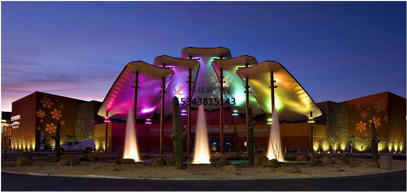 亞克麗處理的膜材一般用于帳篷、卡車篷布或廣告布,其使用壽命短、抗拉強(qiáng)度低,一般不用于膜結(jié)構(gòu)建筑;可焊接型Pvc類膜材,表面PVDF涂層濃度較低,膜材幾乎沒有自潔性,但價格非常便宜;