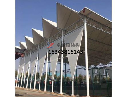 在安裝過程中,需要注意控制膜材料的張力和位置,保證其均勻分布和穩(wěn)定支撐。同時,還需要進(jìn)行節(jié)點(diǎn)連接和加固,整個罩棚的穩(wěn)定性和安全性。最后,需要進(jìn)行驗(yàn)收和保養(yǎng),保證膜結(jié)構(gòu)的長期使用和維護(hù)。