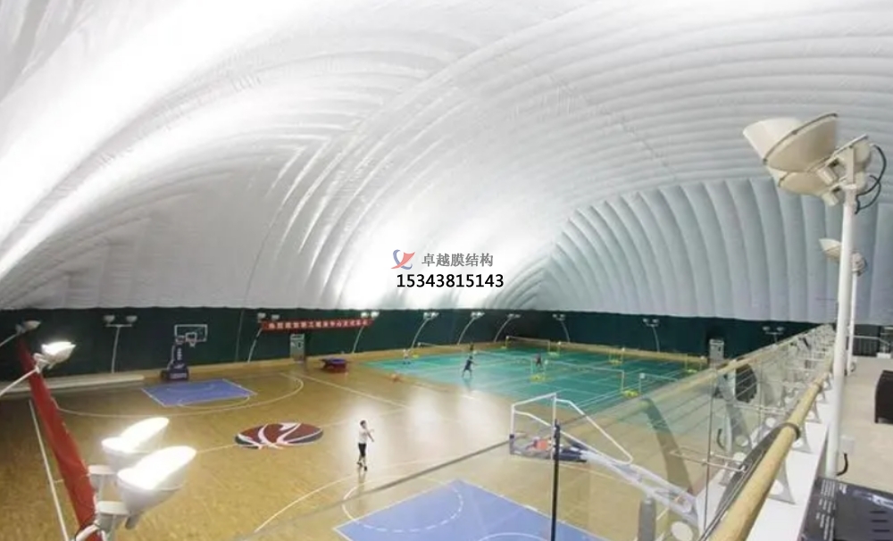 充氣膜結(jié)構(gòu)籃球場:以特別建筑膜材為外殼,經(jīng)過智能化機電設備在內(nèi)部供給正壓支撐氣膜。具有跨度大、外觀優(yōu)美、隔熱環(huán)保、工期短等特點,為籃球運動供給了全新的空間體驗。