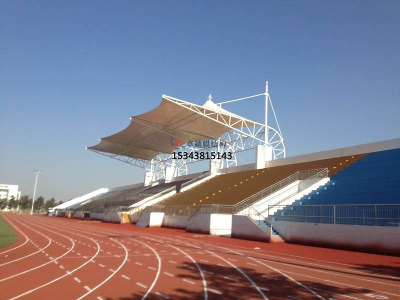 膜結(jié)構(gòu)車棚膜結(jié)構(gòu)所用的膜材料為具有、阻燃、耐久、自潔等特性的復(fù)合材料,一般由基布和涂層二部分組成?;贾饕捎镁壑w維或玻璃纖維絲編織而成,有平織和絞等多種編織方法,不同的膜結(jié)構(gòu)車蓬編織方法影響著膜材料的經(jīng)緯向力學(xué)性能指標(biāo),膜的抗拉強(qiáng)度和抗撕裂強(qiáng)度等;涂層材料主要有聚四氟乙烯和聚氯乙烯,在一定程度上提高了膜材料各項(xiàng)強(qiáng)度指標(biāo),為提高膜材料的耐久、自潔等特性,表面往往有一層氟涂層或硅涂層,膜材料的耐火、耐久及防水、自潔等性能,決定著膜材料的物理特性。