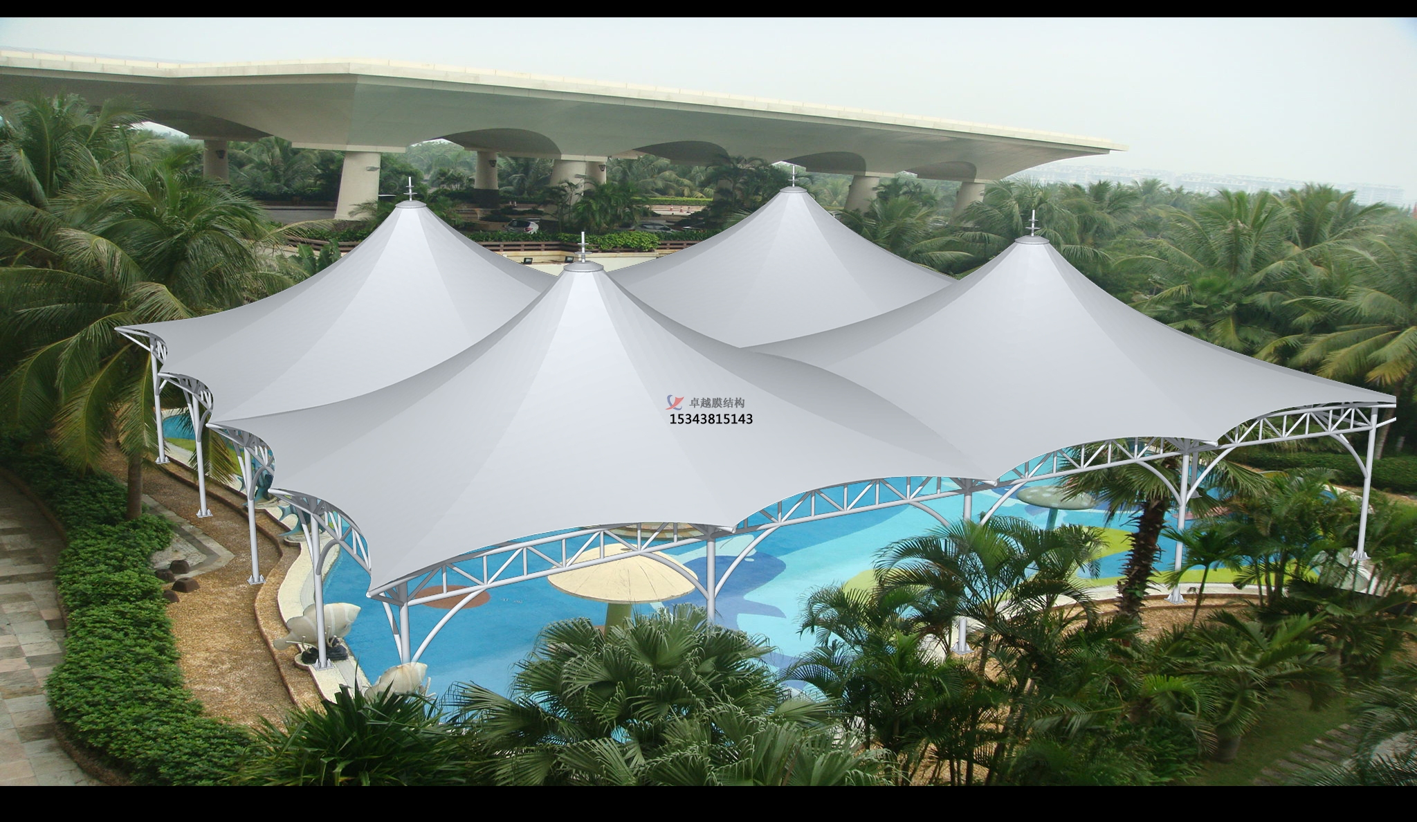 膜結(jié)構(gòu)是20世紀(jì)中期發(fā)展起來(lái)的一種新型建筑結(jié)構(gòu)類型,它打破了純直線建筑風(fēng)格的模式,以其獨(dú)有的優(yōu)美曲面造型,簡(jiǎn)潔、明快、剛與柔、力與美的組合,給人耳目一新的感覺(jué),同時(shí)給建筑設(shè)計(jì)師提供了更大的想象和創(chuàng)造空間。膜結(jié)構(gòu)具有強(qiáng)烈的時(shí)代感和代表性,是集建筑學(xué)、結(jié)構(gòu)力學(xué)、精細(xì)化工、材料科學(xué)、計(jì)算機(jī)技術(shù)等為一體的多學(xué)科交叉應(yīng)用工程,具有很高的技術(shù)含量和藝術(shù)感染力,其曲面可以隨建筑師的設(shè)計(jì)需要任意變化。結(jié)合整體環(huán)境,建造出標(biāo)志性的形象工程,并且實(shí)用性強(qiáng)、應(yīng)用領(lǐng)域廣泛。既可應(yīng)用了大型公共設(shè)施,如體育場(chǎng)館的屋頂系統(tǒng)、機(jī)場(chǎng)大廳、展覽中心、購(gòu)物中心、停車場(chǎng)、站臺(tái)設(shè)施等。又可應(yīng)用于休閑設(shè)施、工業(yè)設(shè)施、入口廊道以及標(biāo)志性或景觀性的建筑、小品等。