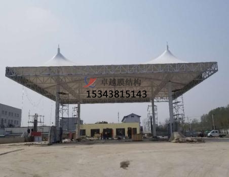 2、膜結(jié)構(gòu)加油站罩棚膜材采用進(jìn)口PVdf膜材,使用壽命達(dá)十五年以上