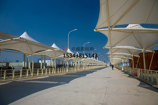 四、膜結(jié)構(gòu)裝置過(guò)程中不該發(fā)生雨水積存現(xiàn)象。一起應(yīng)依據(jù)降雨的程度決議工程的間斷和繼續(xù)。