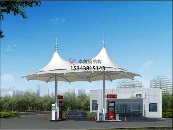 其次;我們可以通過更換韌性和光潔度更高的膜布材料,來降低受到大風和大雨的阻力,變相的來增加加油站罩棚設(shè)計安裝的張力,從而增加牢固度。