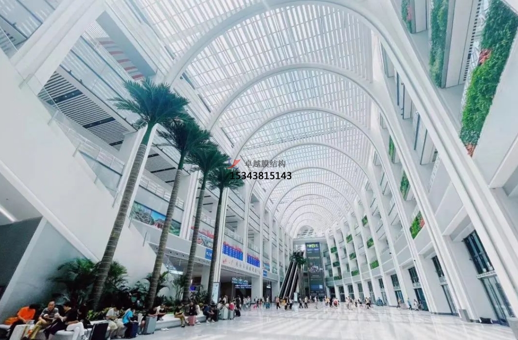輕質(zhì)美觀:膜結(jié)構(gòu)重量輕,僅為傳統(tǒng)建筑的三十分之一,且造型自由、輕巧、柔美,能夠提升高鐵站的整體美觀度。