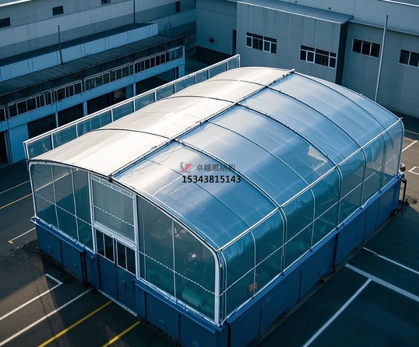 膜結(jié)構(gòu)罩棚主要依靠膜材自身強(qiáng)度及預(yù)應(yīng)力來(lái)承受外部荷載,形成穩(wěn)定的空間結(jié)構(gòu)。在垃圾中轉(zhuǎn)站應(yīng)用中,常見的有骨架式膜結(jié)構(gòu)和充氣式膜結(jié)構(gòu)。