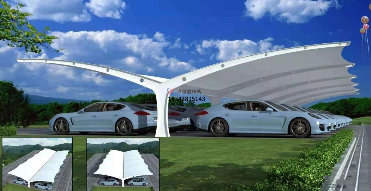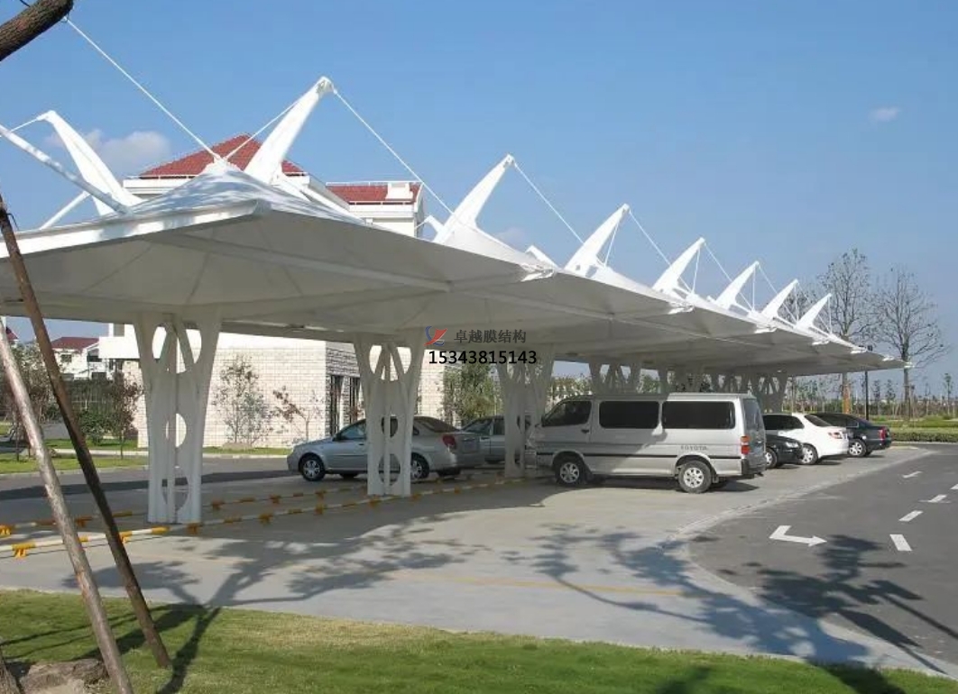 雙挑膜結(jié)構(gòu)車棚錯落有致地排列著,不僅為車輛提供了庇護(hù),還宛如一件件精美的藝術(shù)品,與周圍的綠化景觀、建筑風(fēng)格相得益彰,極大地提升了整個區(qū)域的環(huán)境美感和品質(zhì)檔次。