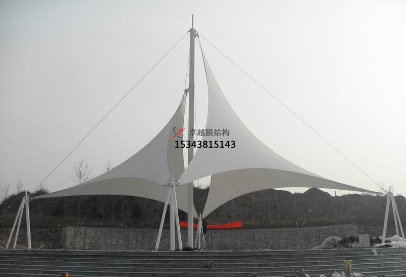以膜材、鋼索及支柱構成,使用鋼索與支柱在膜材中導入張力以達安 定的方式。除了可實踐具構思,立異且美觀的造型外,也是*能展現(xiàn)膜結 構精力的結構方式。 近年來,大型跨距空間也多采用以鋼索與壓縮材構成 鋼索網(wǎng)來支撐上部膜材的方式。因施工精度要求高,結構功能強,且具豐 富的表現(xiàn)力,所以造價略高于骨架式膜結構。