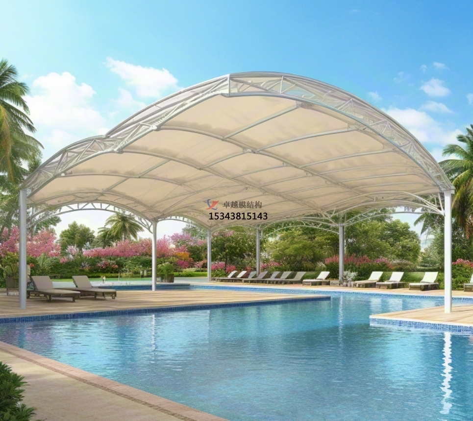 隨著現(xiàn)代建筑設計理念的不斷發(fā)展,游泳池膜結(jié)構(gòu)遮陽棚作為一種新型的建筑形式,正逐漸成為眾多游泳池的標配。這種遮陽棚不僅為泳池提供了實用的遮陽擋雨功能,更以其獨特的造型和美觀性,為泳池增添了一道亮麗的風景線。