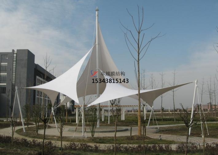 景觀膜結(jié)構(gòu)遮陽(yáng)棚PVC材料的主要特點(diǎn)是強(qiáng)度低、彈性大、易老化、徐變大、自潔性差,但價(jià)格便宜,容易加工制作,色彩豐富,抗折疊性能好。為改善其性能,可在景觀膜結(jié)構(gòu)遮陽(yáng)棚表面涂一層聚四氟乙烯涂層,提高其抗老化和自潔能力,其壽命可達(dá)到15年左右。