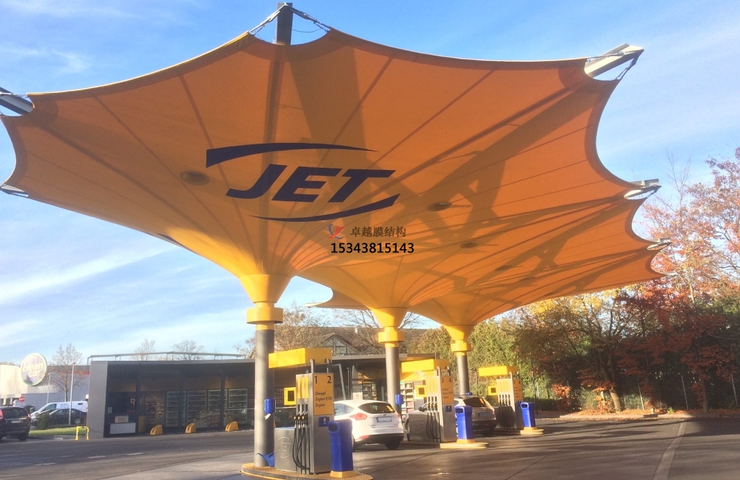 膜結(jié)構(gòu)頂棚通過技術(shù)迭代與設(shè)計創(chuàng)新,正在重新定義加油站的建筑形態(tài)。其“輕盈、高效、可持續(xù)”的特性,不僅滿足了能源補給場景的功能需求,更成為城市美學與低碳理念融合的典范。