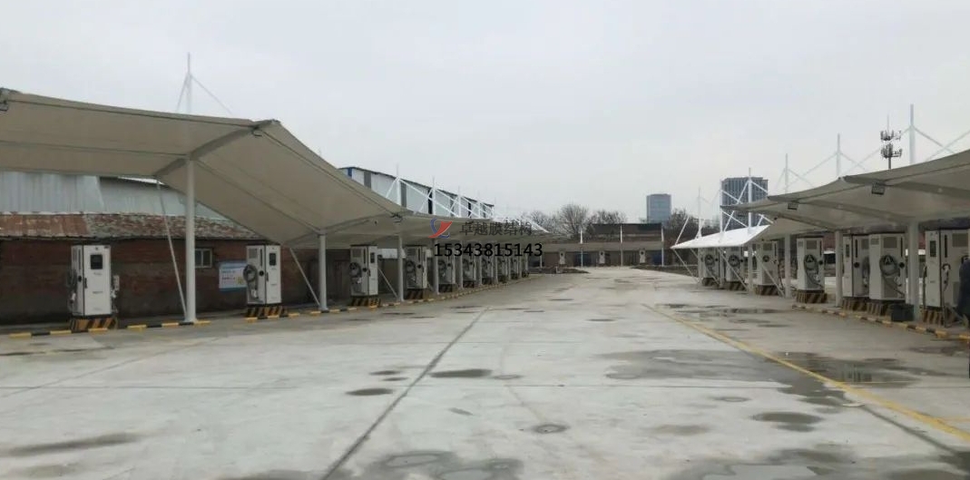 加氣站膜結構雨棚是一種現(xiàn)代化的建筑形式,它采用高強度、高耐久性的膜材料,通過一定的技術手段和結構設計,形成一種具有獨特美學效果和實用功能的建筑形式。這種結構形式在加氣站的應用中,不僅可以提供寬敞、明亮的加油環(huán)境,還能有效地抵御各種惡劣天氣,提高顧客的舒適度和安全性。