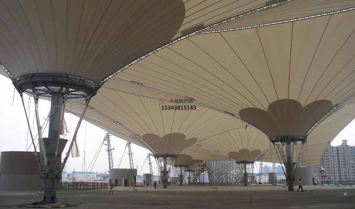 更后是美觀:因為膜結構景觀膜材料具有透光性,實際結構中可以清楚地看見焊縫,所以裁剪縫的布置一定要規(guī)則、合理,更好能形成一些漂亮的圖案以增加膜結構的美感。如果膜表面設置有壓索或脊索,那么更好使裁剪縫與壓索或脊索重合,使索不至于打亂焊縫的圖案布置。