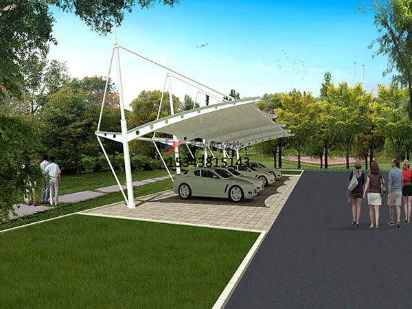 停車場的規(guī)劃和建設(shè)成為現(xiàn)代城市規(guī)劃的重要組成部分,在以后的建設(shè)里會(huì)變得越來越重要。膜結(jié)構(gòu)輕巧、別致的造型在停車場及候車廳的建設(shè)中擔(dān)當(dāng)了重要角色,除了滿足防風(fēng)雨、防日曬等基本功能外,并有較好的標(biāo)識(shí)招攬效果,展現(xiàn)了人們個(gè)性化的一面。膜結(jié)構(gòu)停車棚,自重輕,具有良好的受力特點(diǎn)——成為大跨度空間結(jié)構(gòu)的主要形式之一。