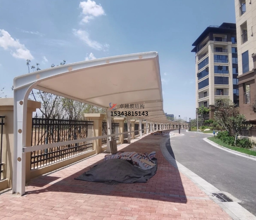 膜結(jié)構(gòu)車棚在與以往的舊式車棚的比較中,整體能承受的載荷大很多,膜結(jié)構(gòu)受力點小,單位尺寸上能承受的壓強高,膜結(jié)構(gòu)車棚都穩(wěn)固如山,并且膜結(jié)構(gòu)車棚的透光性達到13%,不會因為長時間的直曬變黃,也不會物理特性發(fā)生變化,比如變脆,軟化等現(xiàn)象。