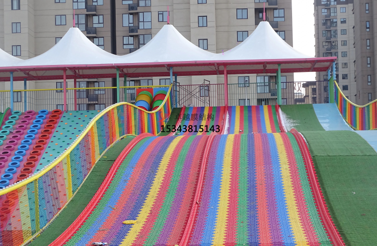 駐馬店商丘兒童樂園彩虹滑道遮陽棚生產(chǎn),主要由鋼結(jié)構(gòu)、鋼化玻璃、夾膠玻璃、耐力板等材料組成。它的特點是安全可靠、色彩鮮艷、造型美觀、安裝方便等。