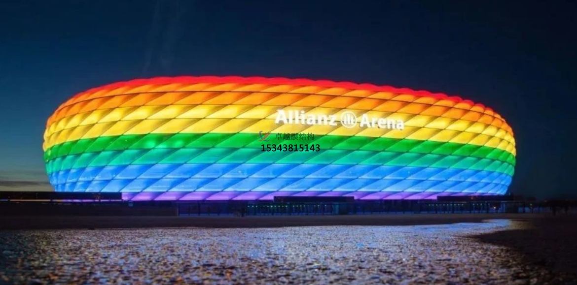 充氣膜結(jié)構(gòu):充氣膜結(jié)構(gòu)是在ETFE膜材料技術(shù)基礎(chǔ)上產(chǎn)生的,通過將兩層或多層膜通過熱熔焊接復(fù)合到一起,形成封閉的氣枕,并充入清潔干燥的空氣。這種結(jié)構(gòu)依靠膜材自身的強(qiáng)度和氣枕的內(nèi)壓來共同承擔(dān)外部荷載,具有輕質(zhì)、高效、環(huán)保等優(yōu)點(diǎn)。
