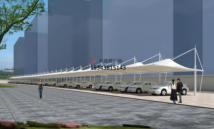 有獨特的藝術(shù)美感,為城市增添亮麗風(fēng)景線。高強度膜材配合張拉技術(shù),使車棚抵御風(fēng)雨能力強,膜材料還具有高強度、耐候性、防火性和自潔性,有的采用永久性膜材,使用壽命可達(dá)25年