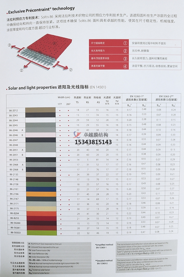 法拉利膜材十多年來,法拉利(PVDF)表面處理的復(fù)合膜材被應(yīng)用在全世界重要的織物建筑工程中?,F(xiàn)在,第代膜材再次確認(rèn)了這一出眾材料性能的更新發(fā)展。法拉利研發(fā)了第代材料正是為了滿足建筑師和業(yè)主在新世紀(jì)之初對于織物建筑提出的要求。這一 全新的膜材得益于更新的科研技術(shù),即將PVDF和硬化介體完美地結(jié)合。這種特殊的結(jié)合明顯地提高了材料的機(jī)械強(qiáng)度、使用壽命,并能長期保持織物建筑的原始 美觀。第代膜材在積累了10多年的經(jīng)驗(yàn)的基礎(chǔ)上,可以提供專業(yè)保證。法拉利現(xiàn)在能夠根據(jù)要求和每個(gè)項(xiàng)目的具體情況,提供12年質(zhì)量保證 (PRECONTRAINT702除外)。